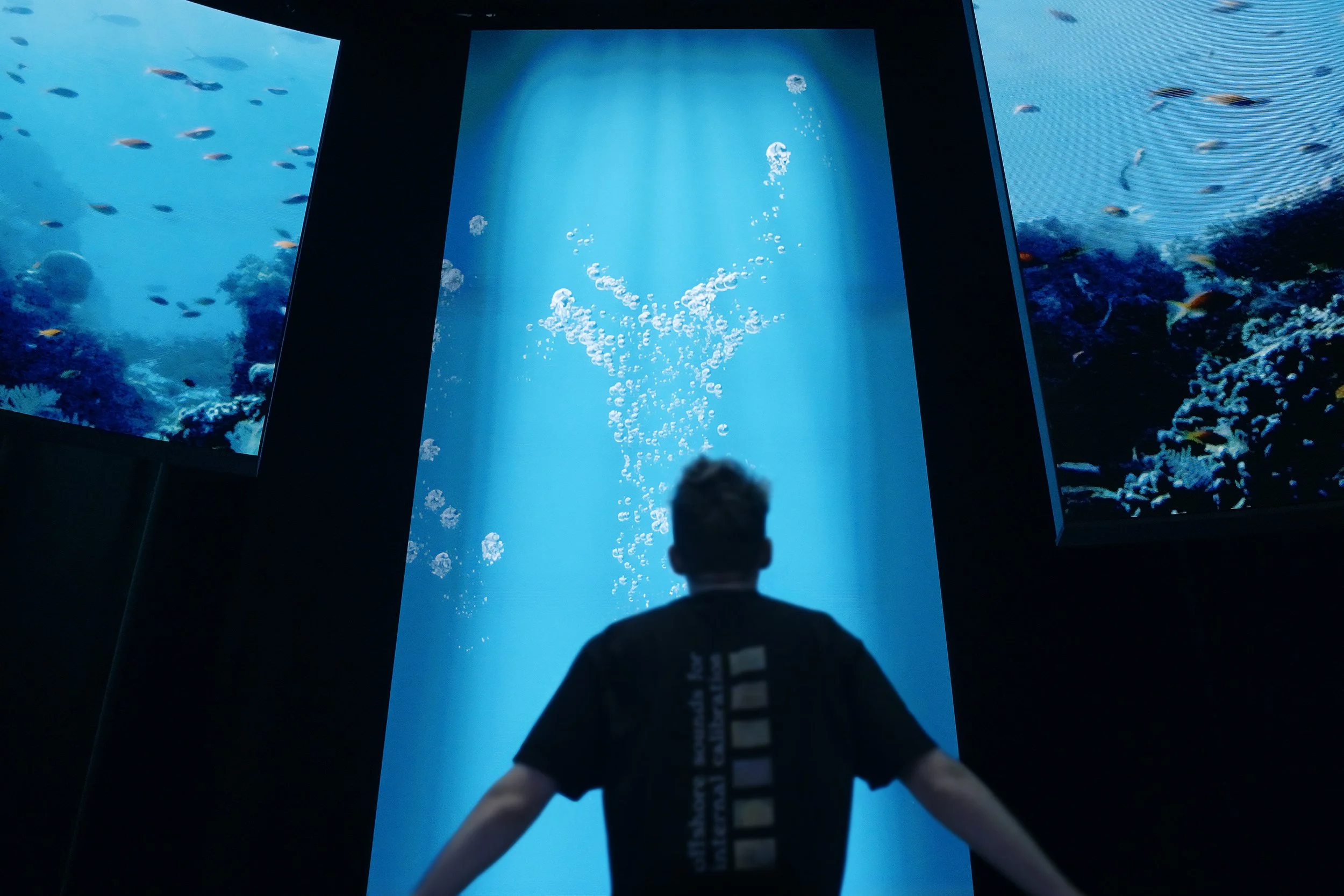 Explore the joy of interaction at our Bubbles installation. Your silhouette transforms into a bubble silhouette on an 8-meter screen, and the more you engage, the higher your bubble silhouette swims up. It's a playful journey to the top.